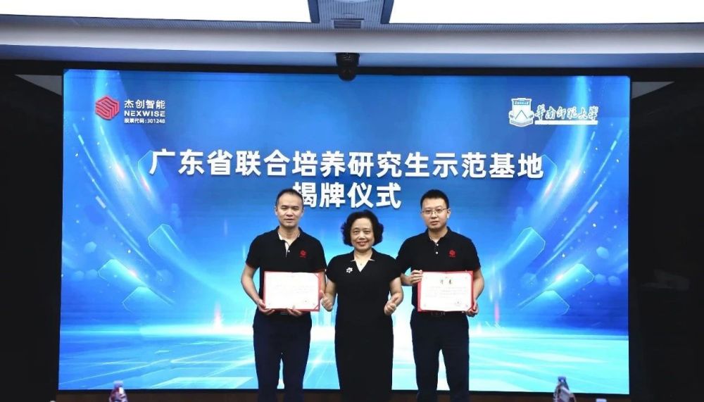 随后,hth.com华体会智能与华师举行了广东省研究生联合培养示范基地揭牌仪式,对hth.com华体会智能指导老师进行了受聘仪式,颁发证书。