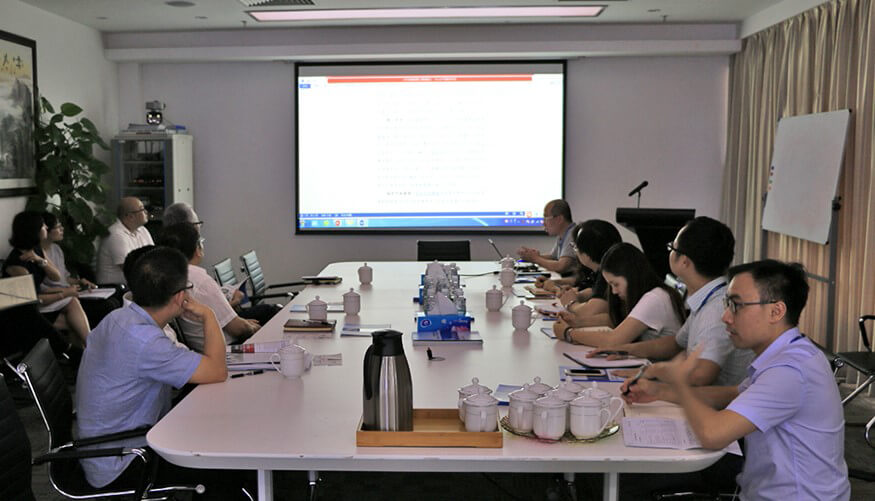 hth.com华体会智能总裁龙飞、财务总监兼董秘李卓屏、技术总监招继恩等人热情接待了陈区长一行,并向各位领导介绍了公司的发展概况、核心产品和技术、主要成绩、经典案例、人才引进措施以及筹备申请IPO等远景规划。陈区长对公司科研方向、技术发展、外销及国内市场的产品策略高度重视,并为公司今后的发展提出了宝贵的指导意见。